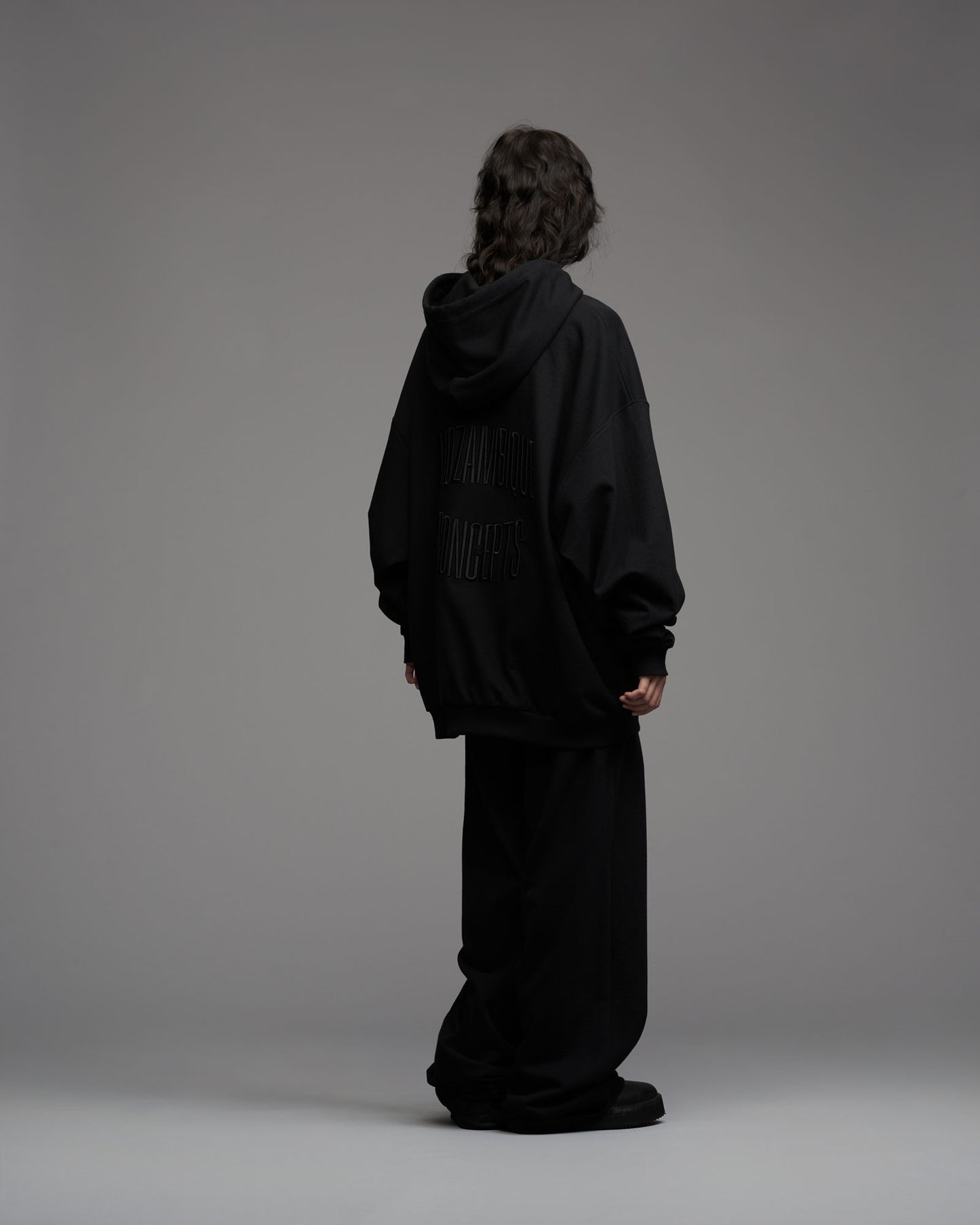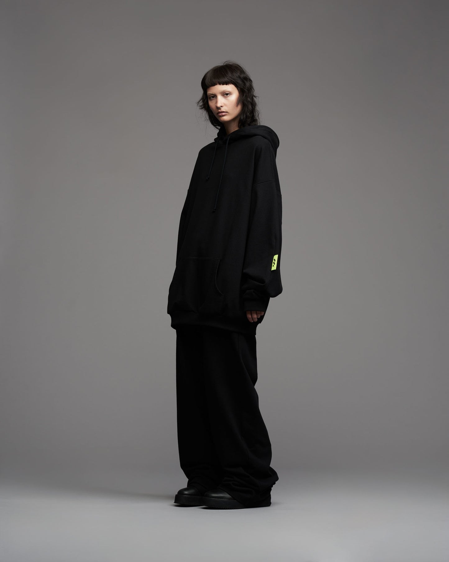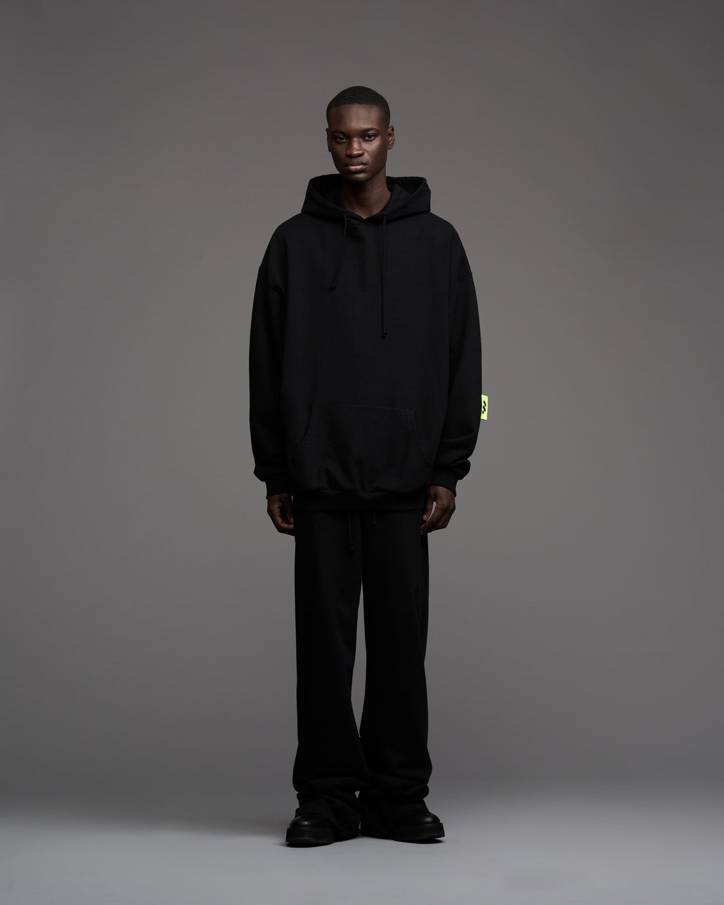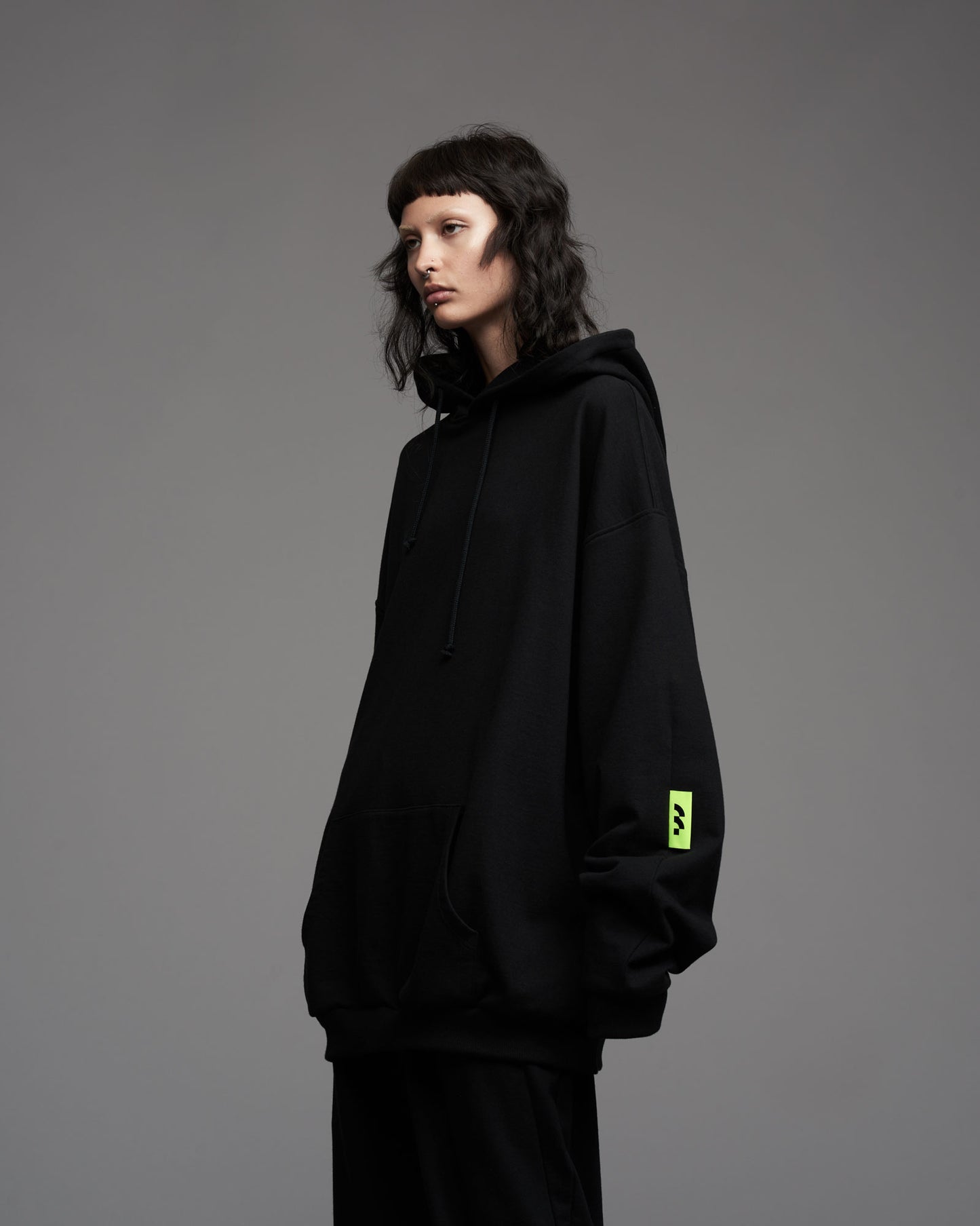 Oversized hooded sweatshirt in organic heavy terry cotton. Tone in tone cord with knot endings in hood. Pocket in front. "Mozambique Concepts" embroidery over back. Double stitched over shoulders and neck. Mozambique x Concepts embroidery tone in tone over front of hood. Mozambique x Concepts neon collaboration flag label stiched in left sleeve side seam.